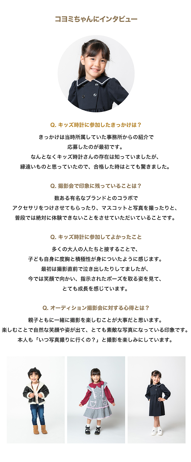 | 参加特典 | ●撮影会にご参加いただいた方は皆さま、 2026年5月30日(土)〜1ヶ月間キッズ時計公式YouTubeにてスライドショー形式で写真が公開されます。 |